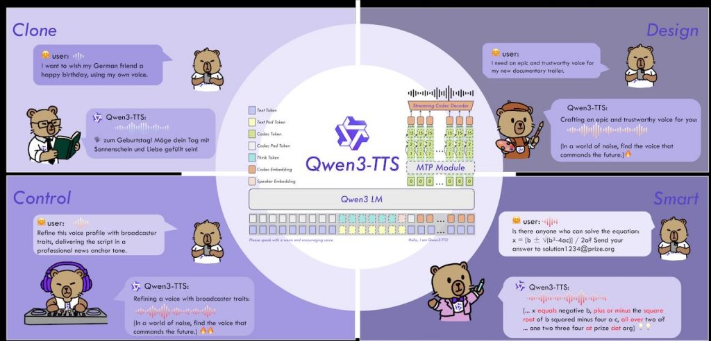 Qwen3‑TTS 由阿里雲的 Qwen 團隊開發的開源語音合成系列模型,專注於提供穩定、富有表現力,且能即時生成語音的功能。整個專案的核心目的在於讓開發者與使用者能夠自由設計語音、快速複製已有聲音,並且能根據指令調整語調、情感與說話速度。相較於市面上其他解決方案,Qwen3‑TTS 同時支援十種主要語言以及多種方言音型,涵蓋中文、英文、日文、韓文、德文、法文、俄文、葡文、西文、意譲等,能讓應用跨語系、跨文化的需求更容易實現。