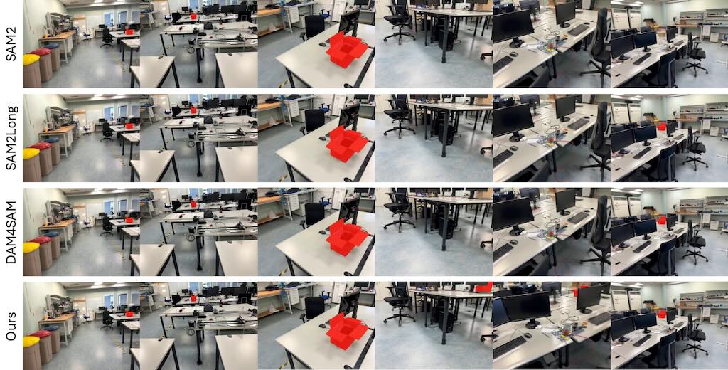 3AM 的創新在於在模型訓練階段,透過輕量的特徵合併模組把從 MUSt3R(一個多視角重建模型)學到的隱式幾何特徵與 SAM2 的外觀特徵結合,形成既能捕捉空間位置又能反映視覺相似度的表示。這樣的融合讓模型在推論時只需要原始 RGB 影像和使用者提供的提示(點、框、mask 等),就能在不同觀點之間追蹤物體,且不需要額外的相機資訊或前處理步驟。文章指出,這種做法在包含大量視角變化的基準測試集(如 ScanNet++、Replica)上,IoU 數值提升顯著,例如在 ScanNet++ 的 Selected Subset 上比 SAM2Long 高出約 15.9 個百分點。整體而言,3AM 在保持即時、可提示化的特性同時提升了跨視角的一致性,為後續的 3D 實例分割與多視角物體追蹤提供了一個更簡單、更有效的解方案。