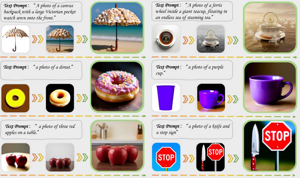 先用現成的視覺‑慣性 SLAM 演算法把鏡頭移動和稀疏點雲拿出來,接著再交給 3D 物件偵測器把每個目標物分割出來。每個偵測到的物件會得到幾張具備相機位姿的多視角圖片、一組稀疏的 SLAM 點,還有一段由視覺語言模型自動產生的文字說明。這些資訊(點雲、多視圖、文字)會被封裝成一個多模态的條件向量,送給訓練好的 rectified‑flow Transformer 去去噪。